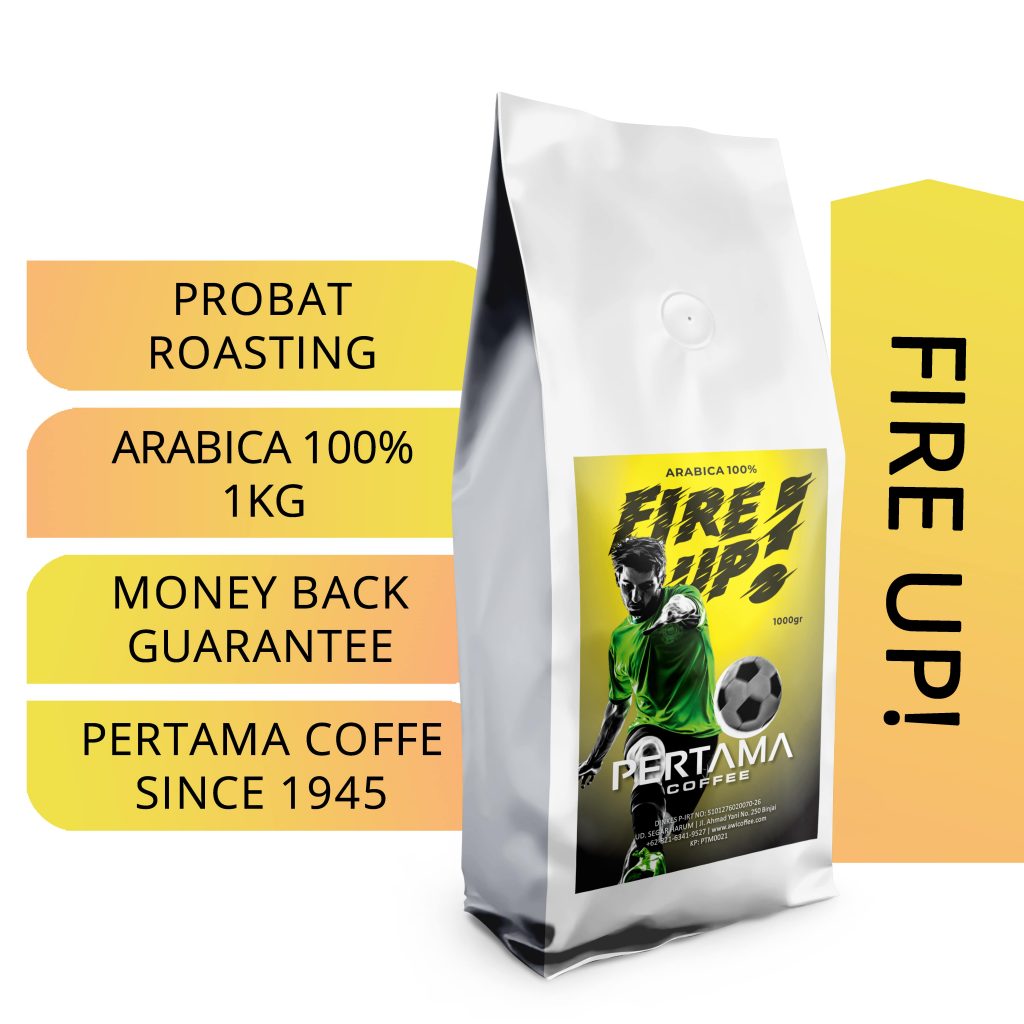 KOPI PERTAMA FIRE UP adalah KOPI ARABICA Sumatra Grade2 100% yang diroasting dengan mesin PROBAT di level roasting FULL CITY medium dark. Dominan rasa coklat caramel yang disukai kebanyakan pencinta kopi INDONESIA.